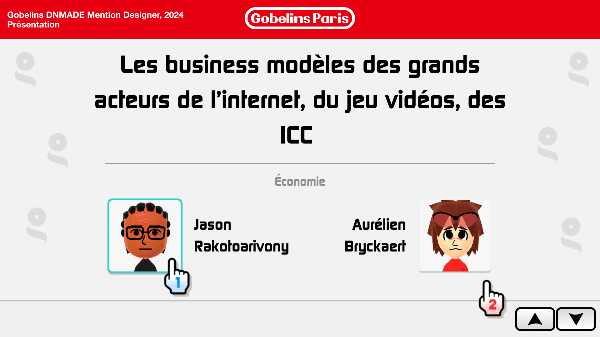 Pour notre étude économique, Aurélien Bryckaert et moi-même avons conçu une présentation interactive concernant le modèle d'affaires de Nintendo, réalisée grâce à Figma. Comme en témoigne l'esthétique de notre travail, nous avons gardé à l'esprit l'aspect artistique emblématique de Nintendo lors de sa création. Vous pouvez examiner cette présentation personnellement en cliquant ici.